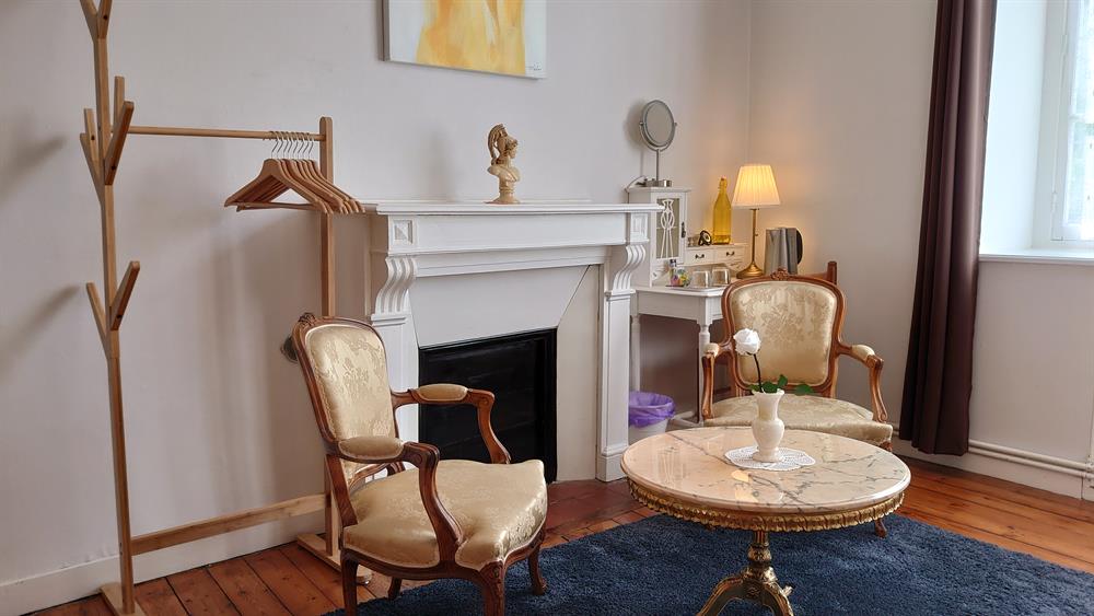 - Salon dans la chambre avec deux fauteuils Voltaire et Table Violon.