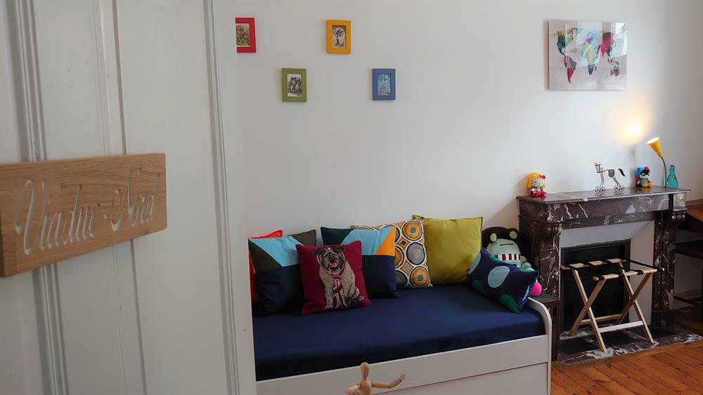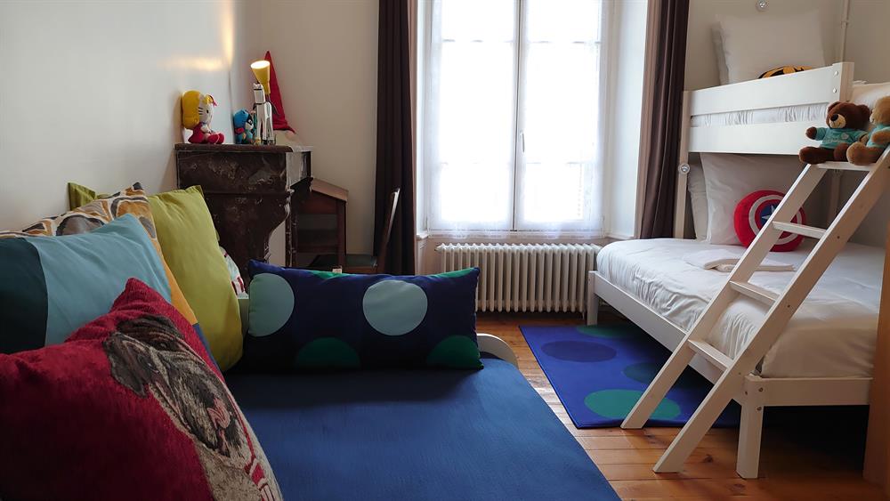 - "Viaduc Nord" (2 à 4 personnes - 15 m²) : Chambre dortoir avec un lit superposé (140 cm en bas, 90 cm en haut) et un lit 90cm pouvant également servir de canapé si moins de 4 personnes dans cette chambre - côté rue.